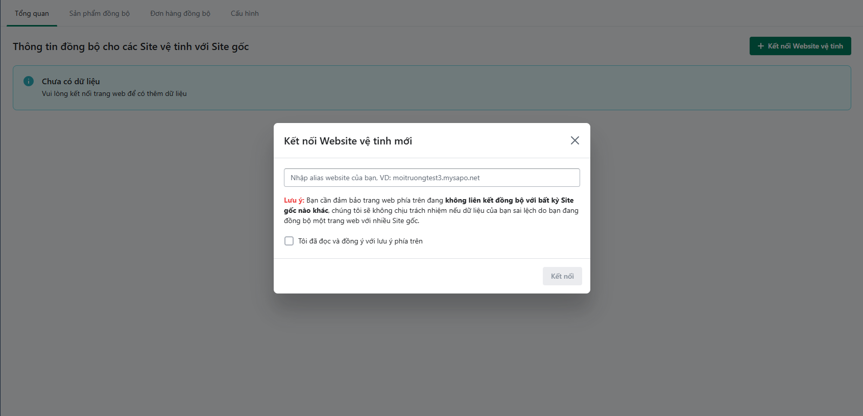 Trang web bạn đang kết nối cần đảm bảo rằng không liên kết với Site nào trước đó qua kênh đồng bộ,